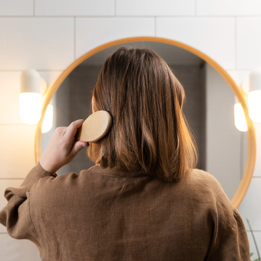 Unsere natürliche Holzhaarbürste ist aus nachhaltigem Holz gefertigt und bietet eine schöne Kombination aus Eleganz und Funktionalität.