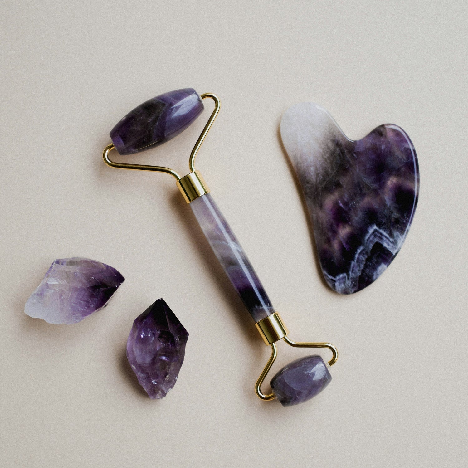 🎁 Presentando nuestro juego de rolleros Gua Sha de lujo, un lujoso regalo para los entusiastas del cuidado de la piel. Hecho a partir de la piedra jade de alta calidad, este conjunto incluye una herramienta Gua Sha y un rodillo, ambos diseñados para promover el drenaje linfático, reducir la hinchazón y mejorar los contornos faciales.